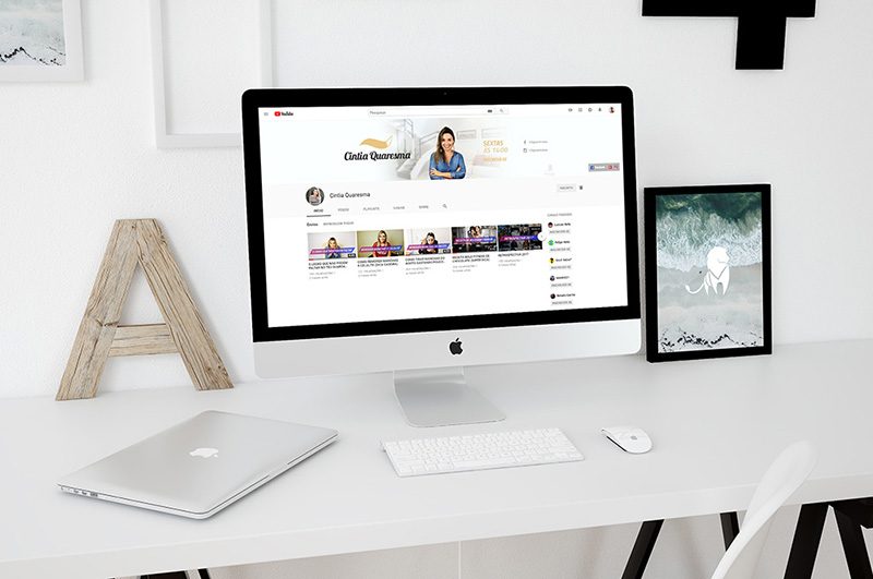 Arte do canal para identificar a YouTuber Cintia Quaresma com sua marca e layout apropriado ao conteúdo que ela gera no YouTube, visando comunicar o dia que é lançado os vídeos novos, afim de criar fidelidade com os inscritos e gerar interesse nos espectadores novos que acessarem seu canal.